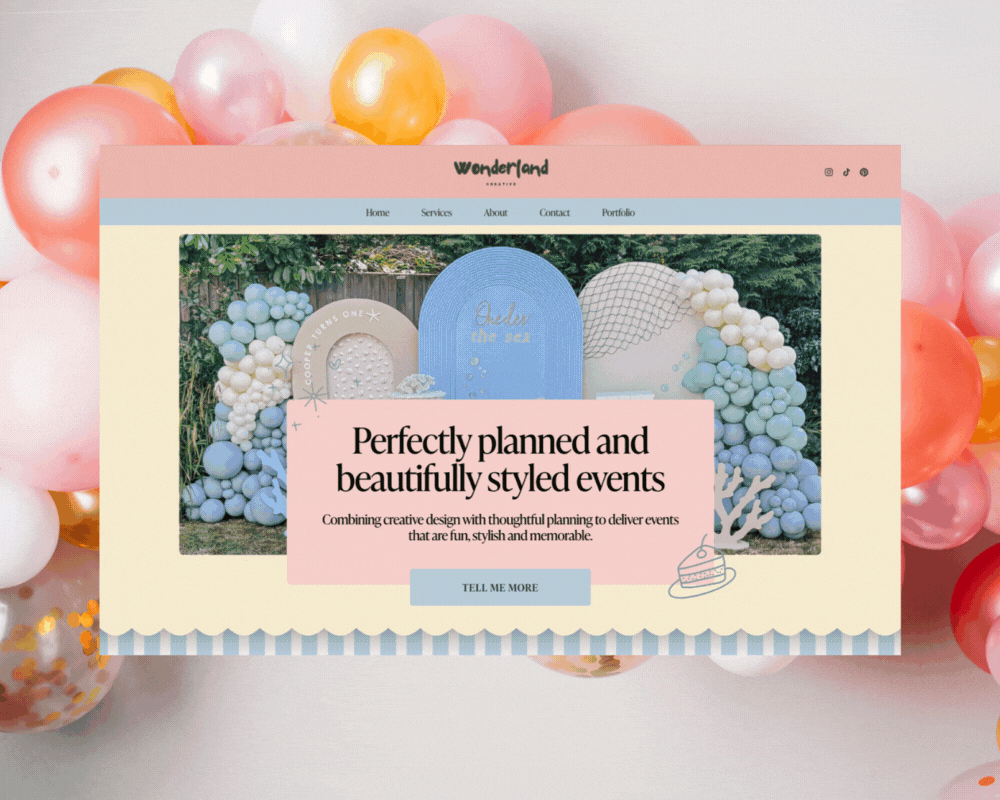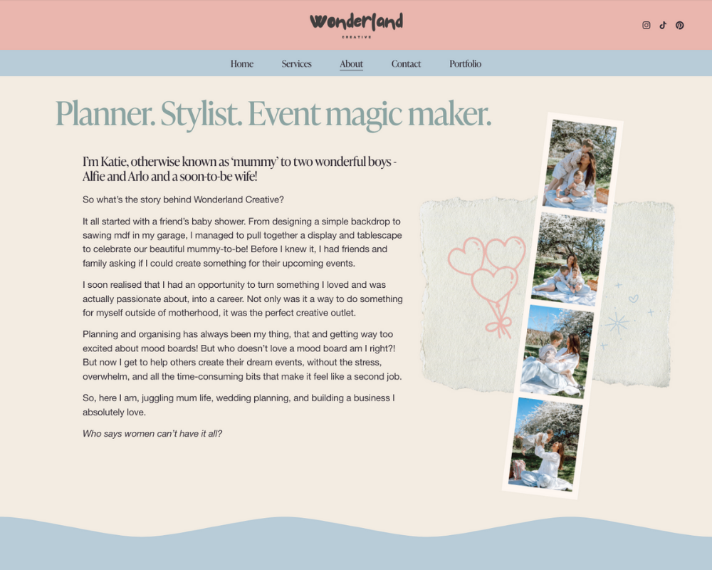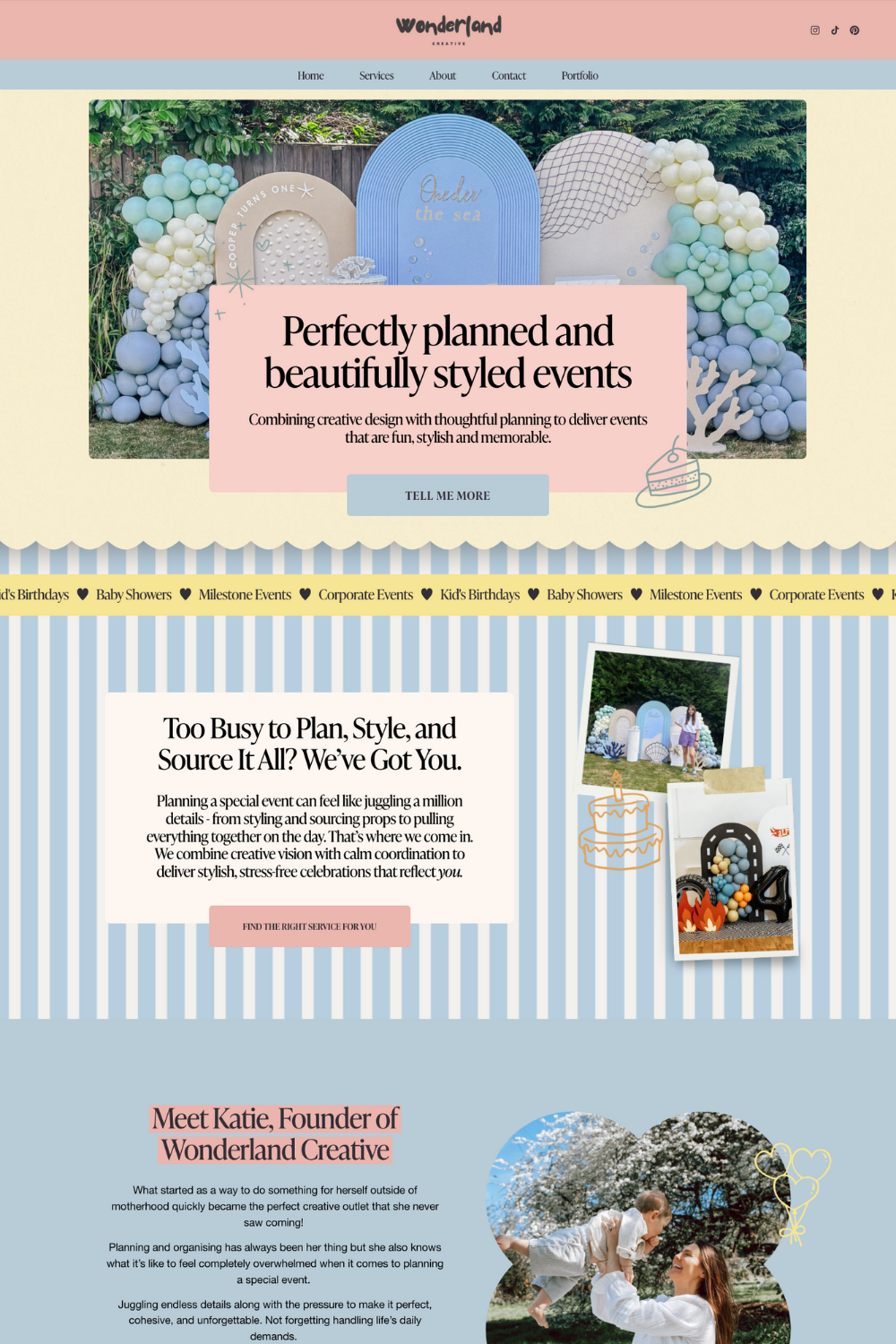 Katie tasked me with creating a Squarespace website that is as fun and colourful as the events she styles. A key challenge was to showcase her previous event events while incorporating fun brand graphics and patterns.
